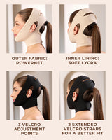 - AJUSTABLE - Envoltura Facial de Compresión Perfecta Post Cirugía. es completamente ajustable con velcros en 2 lugares diferentes.