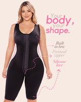 Especialmente diseñada para mujeres con una talla de cintura y dos más en cadera, esta faja incorpora un corrector de postura que mejora tu posición corporal, hombros acolchados para máxima comodidad y una práctica cremallera perineal que facilita su uso.